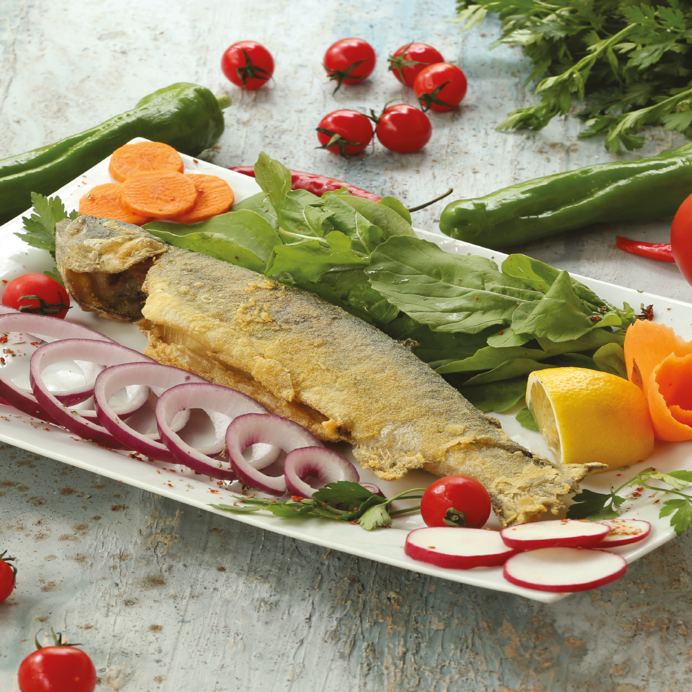 Özel bir marine sosunda marine edilmiş, mısır unuyla kaplanmış ve kızgın ayçiçek yağında kızartılmış kalamar.